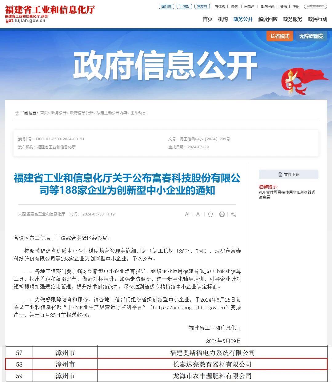 日前,长泰达亮教育器材有限公司(简称:达亮企业)传来喜讯:凭借其前瞻性的创新理念、卓越的市场洞察力以及诚信可靠的服务,展现出了强大的市场竞争力,达亮企业继荣获国家高新技术企业、福建省科技型中小企业之后,再次成功荣获福建省工信厅评审认定的2024年福建省创新型中小企业荣誉称号,充分彰显了达亮企业在创新能力和发展潜力方面的卓越表现,也是对公司研发创新成果的肯定。